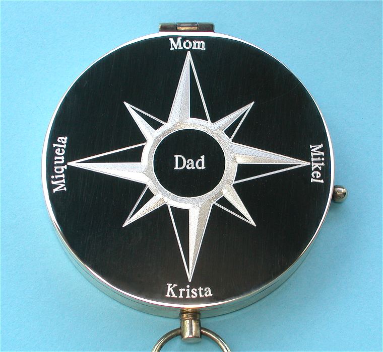 Medium-Sized Pocket Compass Retail Price: $12.00 - $14.00 each (Min Order 100 pcs) The outside lid or the back of each compass version can be engraved with your personalized inscription of up to 30 words in a simple font like Times New Roman or up to 25 words in other fonts. The inside lid of any of the compasses can be engraved with up to 18 words in a simple font like Times New Roman or up to 15 words in other fonts. A protective red velvet pouch is included for storage. |