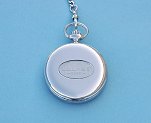 We are pleased to offer the beautiful Dalvey Full Hunter Pocket Watch from Grants of Dalvey in Scotland.  The Dalvey Full Hunter Pocket Watch has a precision made quality Swiss quartz movement.  Pressing the button on the stem opens the cover to reveal the face with sweep second hand.  The Dalvey Full Hunter Pocket Watch and Chain measures 1 15/16 inches (49 mm) in diameter, .545 inches (14 mm) thick, and weighs 3.5 ounces (99 grams).  The front of the case has a stainless steel oval Dalvey badge, while the back of the pocket watch is plain and can be custom engraved.  The plain back of the pocket watch is recommended for engraving, however, the front can be engraved with a limited amount of curved text above and below the badge. Please note that the inside lid cannot be engraved.