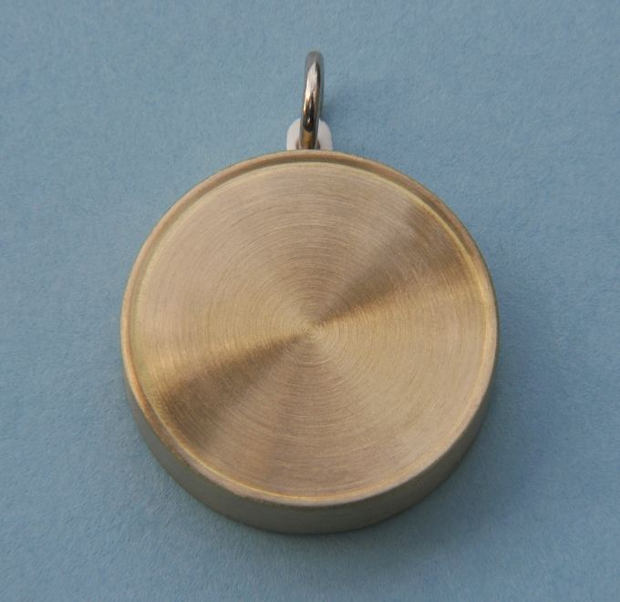 The compass measures 1 inch (25 mm) in diameter and is 1/4 inch (6.7 mm) thick.