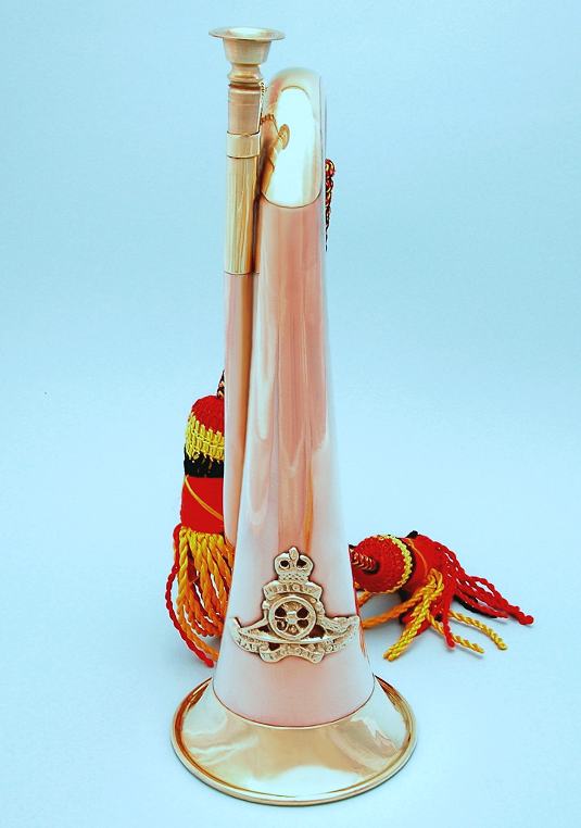 The bugle has a cast solid brass Royal Artillery insignia on the top with the motto "Ubique" (Everywhere), with