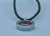 17.5 inch Silver Necklace Chain $22.50 19.5 inch Silver Necklace Chain $24.00 This Stainless Steel Compass Pendant features a classic Greek design around the bezel, as found in Greek artifacts. The bottom of the pendant (opposite the chain bail) is marked "STANLEY LONDON" and the back of the pendant can be custom engraved with up to eight words, initials or a monogram, and even artwork. Due to the small engravable area, Arial or Times New Roman fonts are most legible when engraving more than a single word. The Stainless Steel Pendant Compass measures 15/16 inch (23.4 mm) in diameter, 1/4 inch (5.7 mm) thick, and weighs 1/2 ounce (14.2 grams). The pendant and leather strap weigh 0.64 ounces (28 grams). The Greek Stainless Steel Working Compass Pendant with Chain sells for only $33.50. The compass pendant and leather necklace comes in a handsome, high quality hinged gift box. Two sizes of matching optional Italian Sterling Silver necklace chains are available. The 17.5 inch (45 cm) silver chain is only $22.50, and the 19.5 inch (50 cm) silver chain sells for $24.00. If a silver chain is ordered with a compass pendant, both come in a hinged gift box. We also offer three models of Sterling Silver Compass Lockets, a Sterling Silver Compass Rose Pendant, a Nautical Anchor Pendant with Rhinestones, a Simpler Nautical Anchor Pendant, and a Stainless Steel Compass Rose Pendant with Rhinestones. |