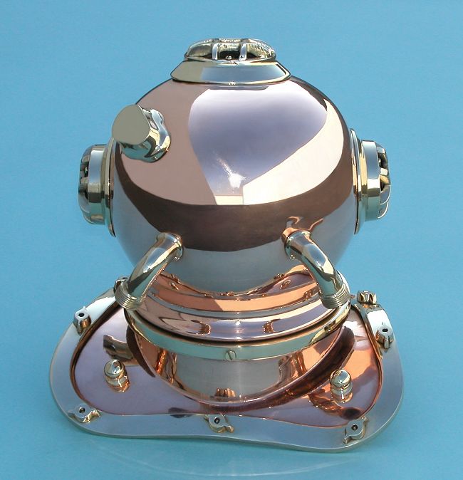 We offer two sizes of the U.S. Navy Mark V Diver's Helmet expertly crafted from brass and copper and polished to a high luster.