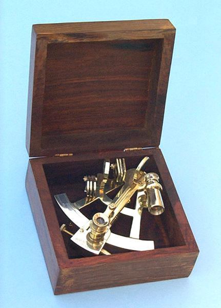 We also offer a similar four inch brass sextant with antique brass patina.  The Special Purchase 4-inch sextant and storage box is available for only $105.
