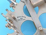 Serialized Antique Finish Brass Sextant with Hardwood Storage Case $185 The sextant comes with a beautiful felt-lined solid hardwood case with a solid brass plaque engraved "Stanley London." The case has two front clasps and a brass handle, and the corner joints are strengthened with beautiful inlaid hardwood splines. This hardwood case can be fitted with a custom brass plaque either on the outside of the case in place of the Stanley London plaque, on the front, or on the inside lid. The six-inch sextant is not a miniature sextant. The six-inch radius is a very common size in modern brass sextants. The sextant is 7 5/8 inches (19.4 cm) tall, 8 3/8 inches (21.3 cm) wide, and 3 3/8 inches (8.6 cm) deep. The sextant weighs 2 pounds, 6 ounces (1.08 kg), the felt lined hardwood case weighs an additional 2 pounds, 8 ounces (1.14 kg). While this sextant is fully functional, it does not come with a certificate of calibration and is not intended for navigation. We also offer a premium grade 6-inch radius sextant with leather case, a and premium grade 6.5-inch radius Polished Captain's Sextant with hardwood case. The 6-inch antique patina brass sextant with hardwood case sells for only $185. |